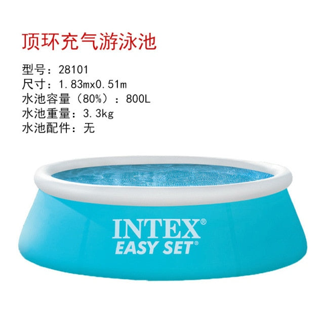 The superior quality and innovative design of the INTEX inflatable swimming pool is the best choice for you and your family. Easy to set up and pack down. Easy to move around or store in the backyard. It is equipped with an easy-fill, self-locking valve that eliminates air bubbles and makes it easier for kids to inflate or deflate it